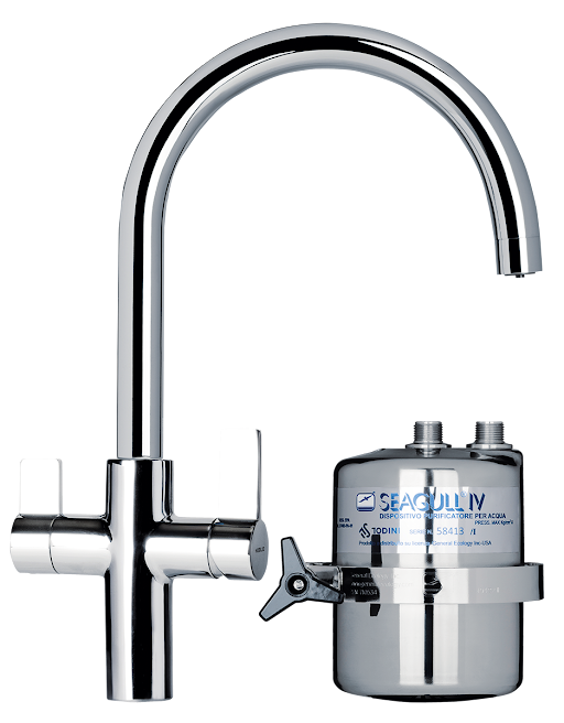 Depuratore X-1 Seagull completo di miscelatore monocomando lavello in ottone cromato.